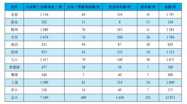 表2 2020年江西省装备安全大排查的学校数统计表